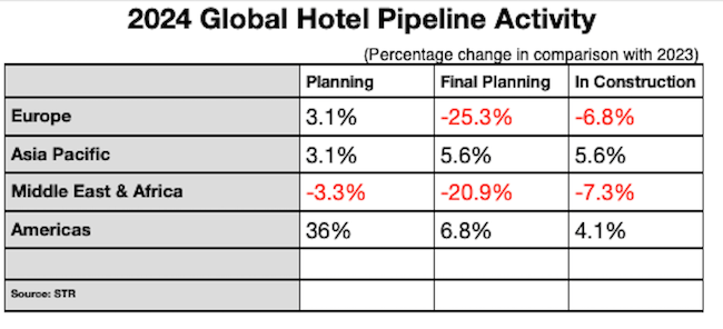 The global hotel development pipeline is showing signs of cooling, with most regions experiencing a decline in new projects compared to last year, according to data from CoStar, a leading real estate data provider. The Americas, however, stands out as the lone bright spot, with construction activity increasing across all stages of development.